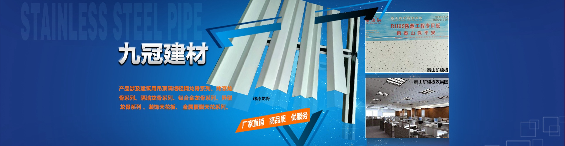 蘇州市九冠建材有限公司是經(jīng)營(yíng)多種建材的專業(yè)公司。是蘇州礦棉板,鋁合金龍骨供應(yīng)商,其中泰山牌礦棉板是蘇州地區(qū)總代理,主要從事工廠廠房、車間辦公室、商場(chǎng)辦公空間、酒店、商業(yè)樓宇等室內(nèi)外裝潢設(shè)計(jì)和施工的企業(yè)。產(chǎn)品涉及建筑用吊頂隔墻輕鋼龍骨系列、烤漆龍骨系列、隔墻龍骨系列、鋁合金龍骨系列、異型龍骨系列 、裝飾天花板、 金屬覆膜天花系列。并配套有:紙面石膏板、 阿姆斯壯礦棉板、泰山牌防潮工程用礦棉板,抗下陷硅酸鈣板、PVC覆膜天花板、鋁格珊、長(zhǎng)條鋁扣板、鋁天花板 、FC板、T型烤漆龍骨 、鋁合金龍骨、等裝飾材料。